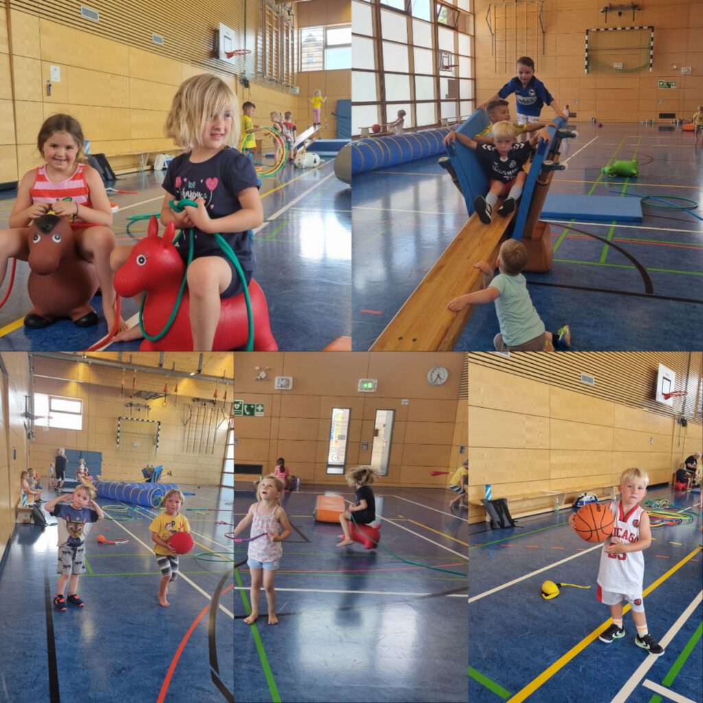 Die Turnhalle ist als Aktionsraum für Kinder in jeder Jahreszeit nahezu ideal. Durch den Einsatz von Klein- und Großgeräten und unterschiedlichen Materialien sowie die kreative Gestaltung themenorientierter Turnstunden, erhalten die Kinder viele spannende Bewegungsanreize, die sie in ihrer Entwicklung ganzheitlich fördern.